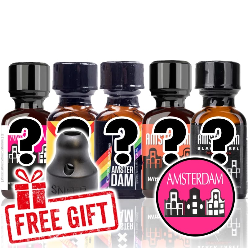 ¡Completa tu experiencia olfativa con el Amsterdam Poppers Party Pack 5 x 24ml! Cree su propio paquete eligiendo cinco frascos de Amsterdam 24ml de nuestra amplia selección. Añade un toque personal con tus variantes favoritas y disfruta de ventajas adicionales con tu pedido.